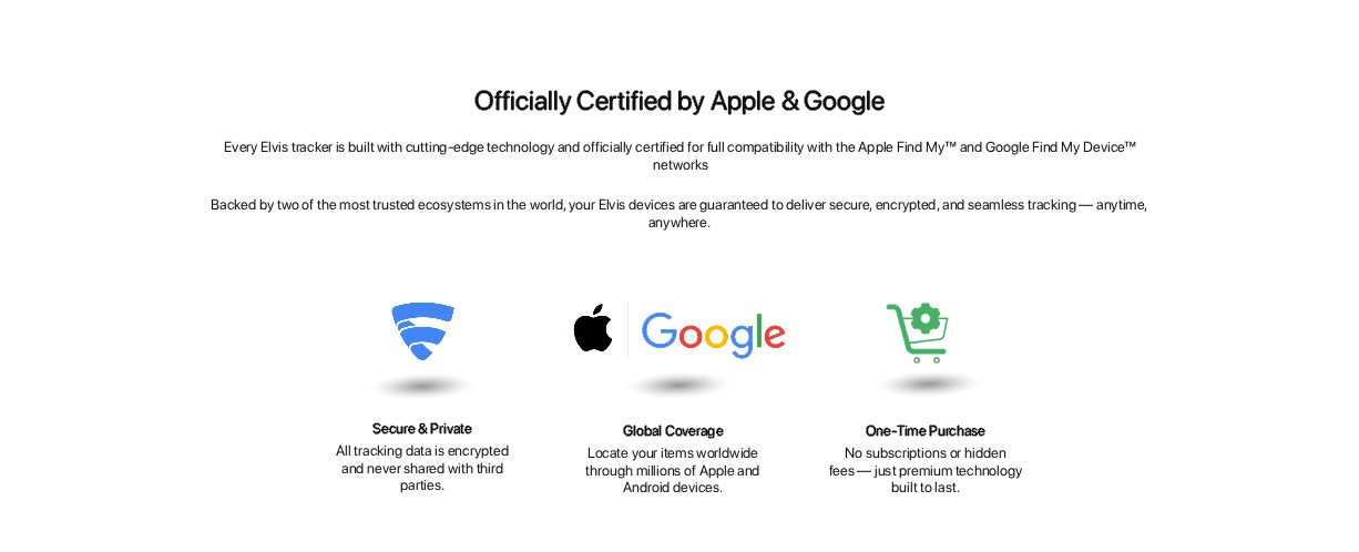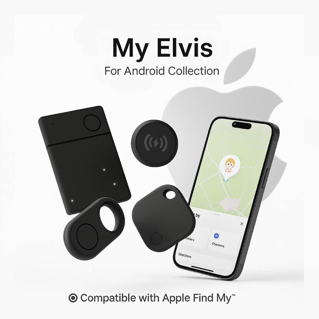 Discover MyElvis iOS Collection: premium trackers compatible with Apple Find My. Keep keys, wallets & pets safe with one click.